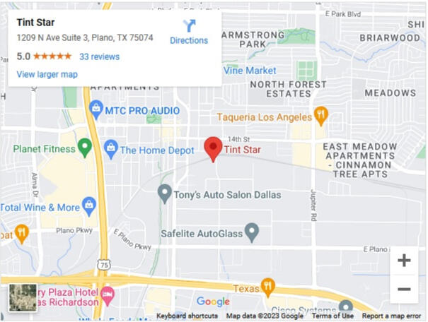 Hey there! Are you looking for a top-notch car window tinting service in Plano, Texas? Look no further than Tint Star! Our team of professionals is dedicated to providing you and your vehicle with the best possible service, complete with red carpet treatment.Not only do we offer expert window tint installation, but our Plano window tint also helps regulate heat and cool your vehicle, all while giving it that VIP look. Plus, our window tinting service is completely legal in the state of Texas, so you can drive with peace of mind.We specialize in a variety of vehicles, including trucks, sports cars, and cars, so no matter what you drive, we have you covered. Trust us to take care of your car and give it the upgrade it deserves.Come see us at Tint Star for all of your Plano car window tinting needs, and let us show you why we are the premier car window tinting service in the area!